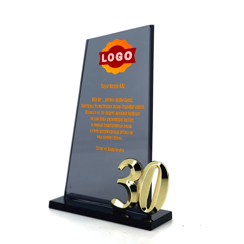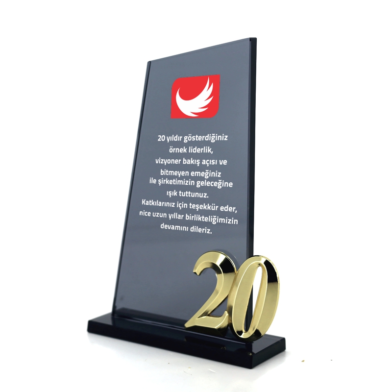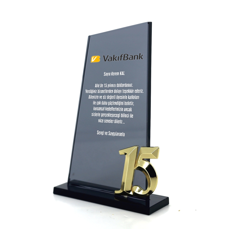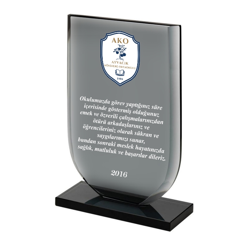 PLAKET BOYUTLARI BASKI ŞEKLİ Füme Kristal Plaket Satışı : 11cm x 20cm x 1cm dir. Baskı Şekli uv baskıdır. Kadife Kutulu kutusuz seçenekleri