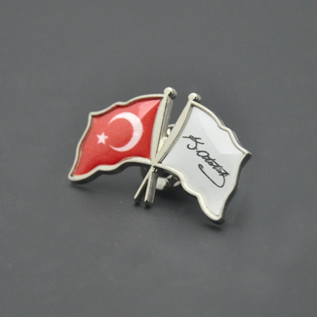 DAMLA ROZET BOYUTLARI BASKI ŞEKLİ MALZEMESİ Gümüş Çift Bayraklı Damla Rozet : Zamak metal den pres baskılı iğnelidir. Damla rozetin boyutu